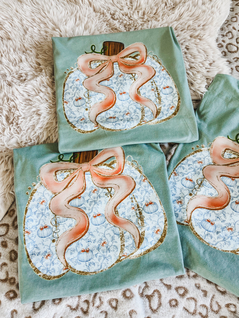 Precious blue floral pumpkins inside a gold frame pumpkin design