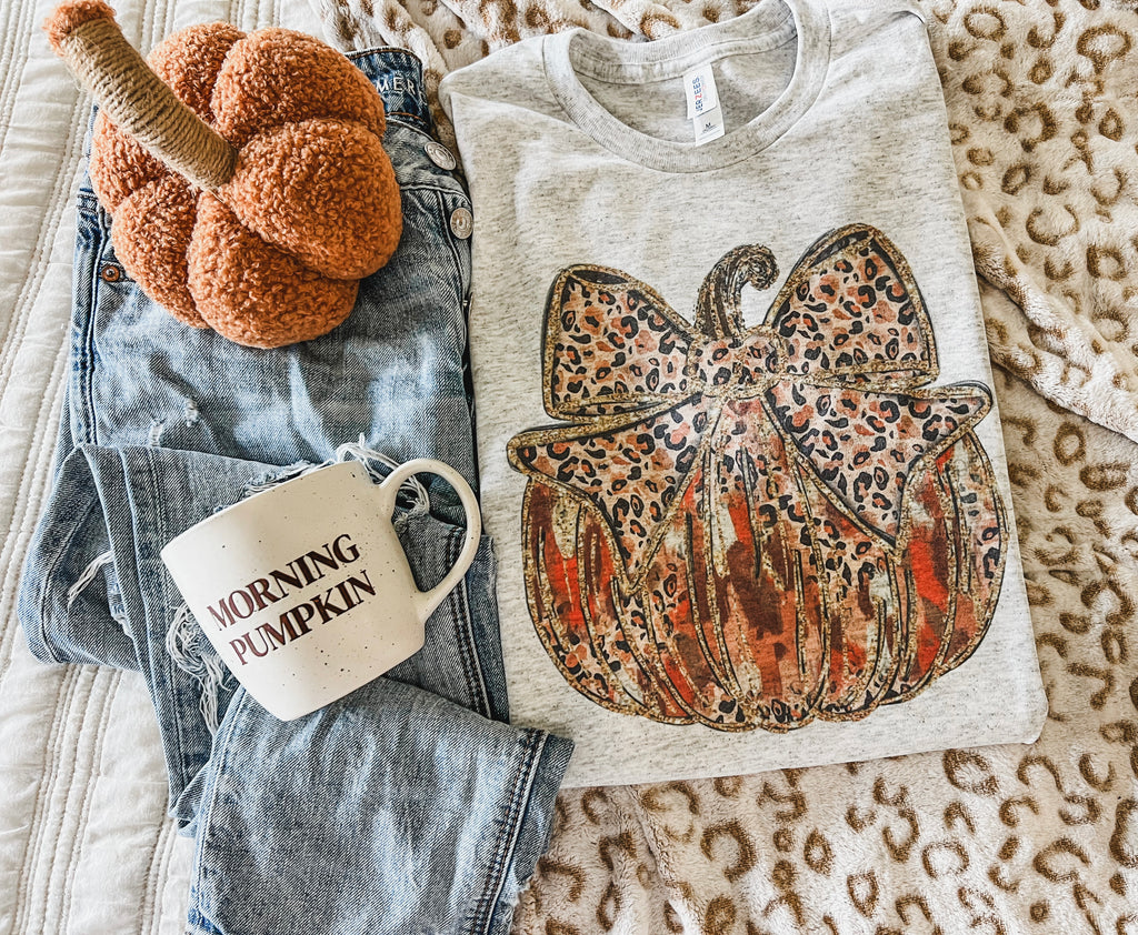 Leopard Bow pumpkin ash tee