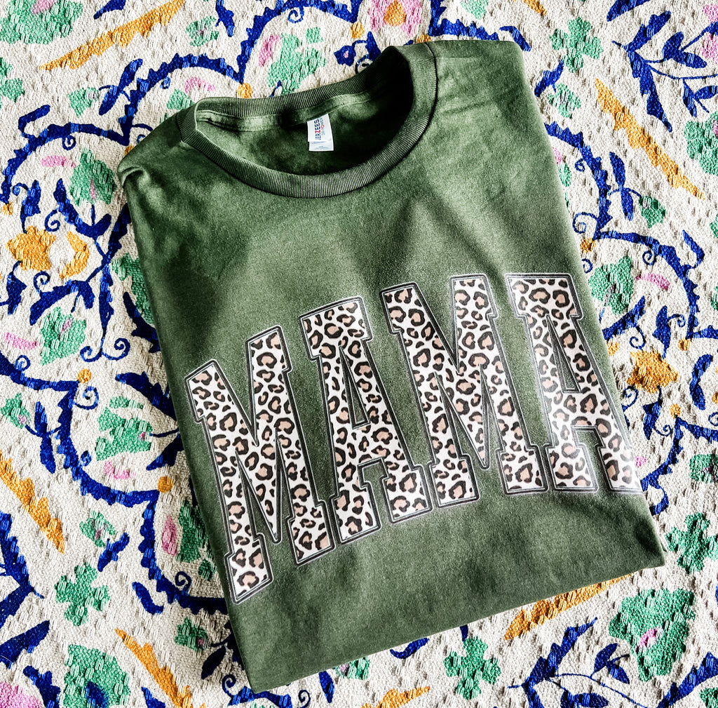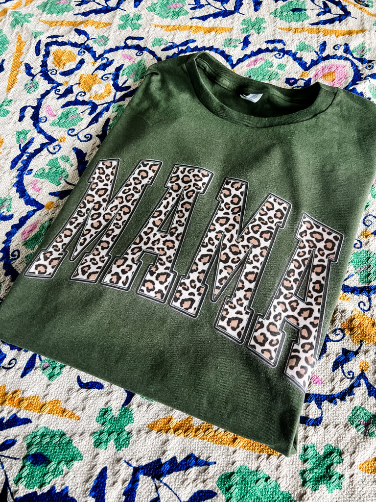 Military green leopard mama tee