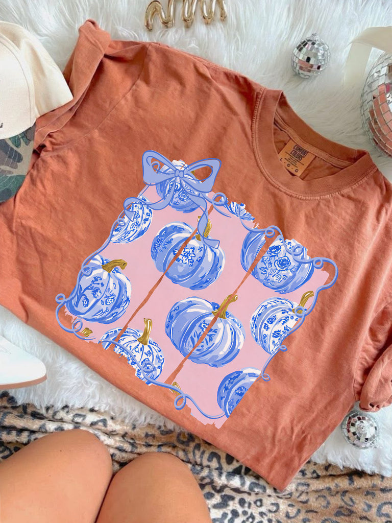 Choose the pink colorful pumpkin or the blue pumpkins design